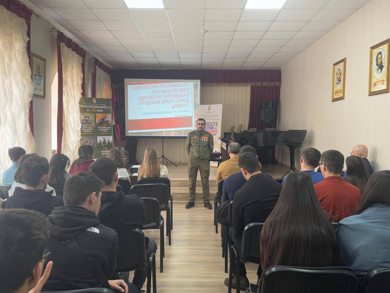 26 февраля в Музыкальном училище им. Д.Ш. Ашурова в рамках муниципальной комплексной программы по противодействию идеологии терроризма в городском округе «город Дербент» прошел показ документального фильма «Защита Курской области: истории героизма»