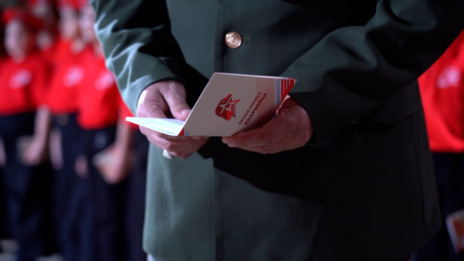 Новым членам патриотической организации вручили личные книжки и поздравили со вступлением в ряды юнармейцев.
