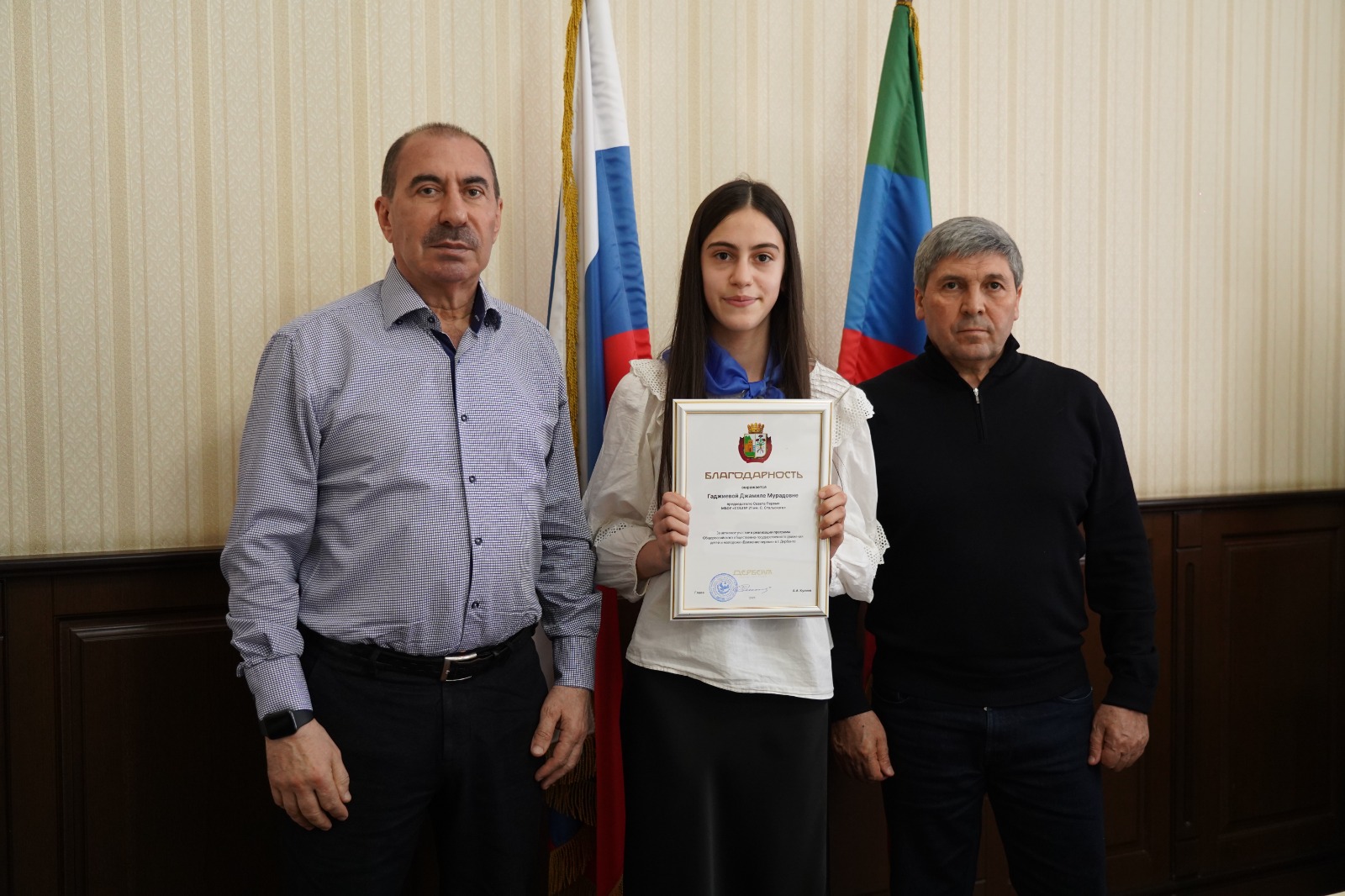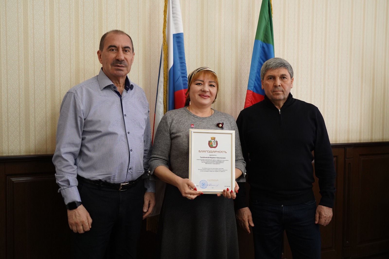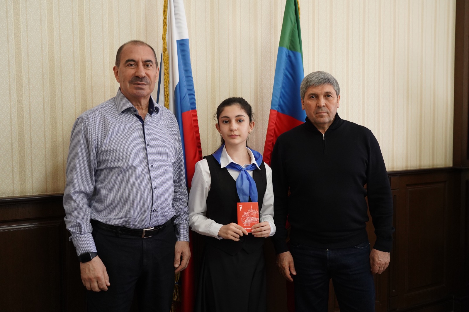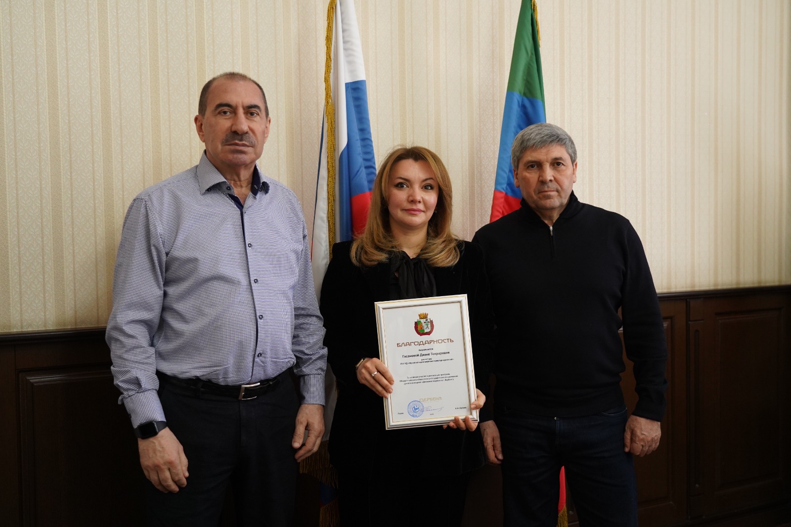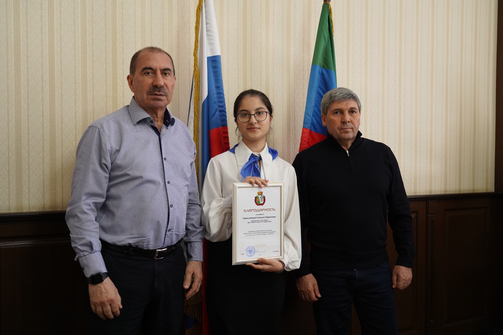 По итогам заседания были вручены благодарности наиболее отличившимся активистам и наставникам, победителям всероссийских и региональных проектов. Был особо отмечен вклад в работу Движения Первых руководителя музея Истории мировых культур и религий Дианы Гасановой и заведующей музея «Боевая Слава» Тамилы Зейналовой. Также, в рамках Всероссийской акции «Мы - граждане России» главой города активистам были вручены их первые паспорта.