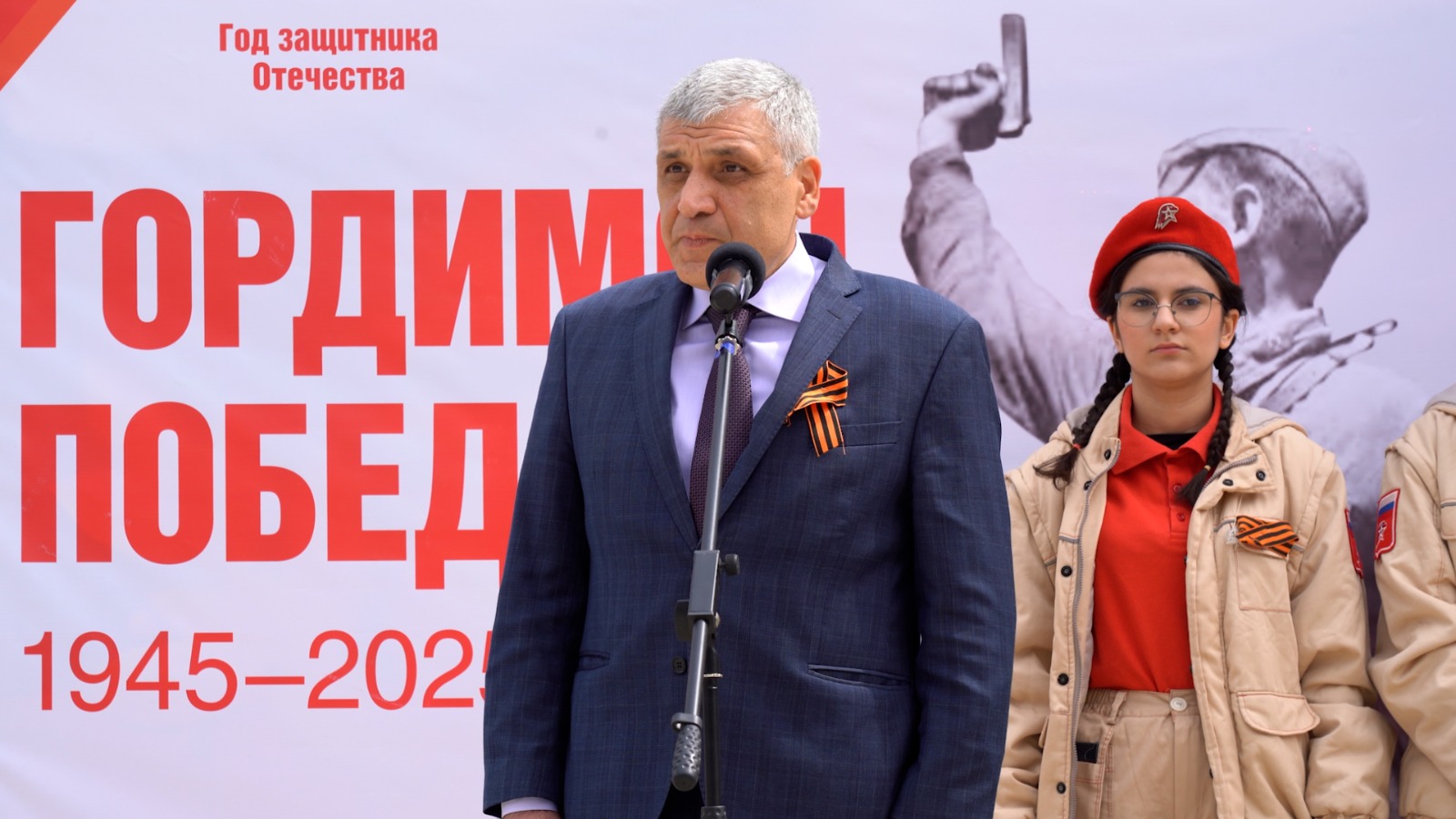 Также с речью выступил председатель Совета ветеранов г. Дербента Гаджимурад Гаджимурадов. Он поблагодарил всех тех, кто участвует в акциях, приуроченных к 80-летию Победы, а также упомянул о важности патриотического воспитания молодежи.