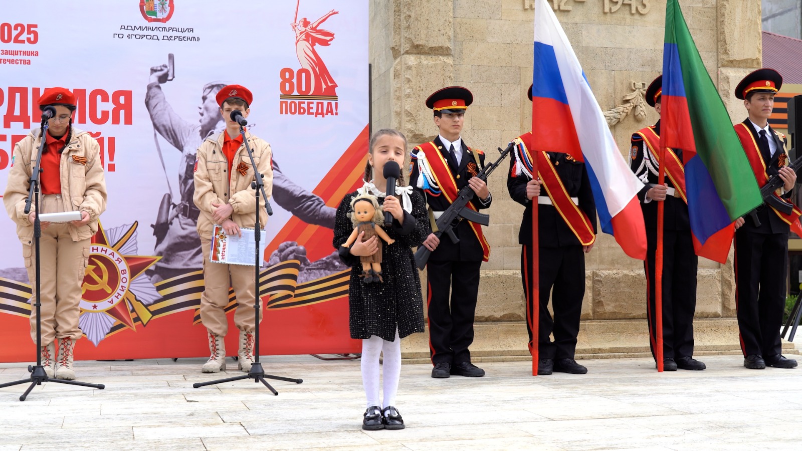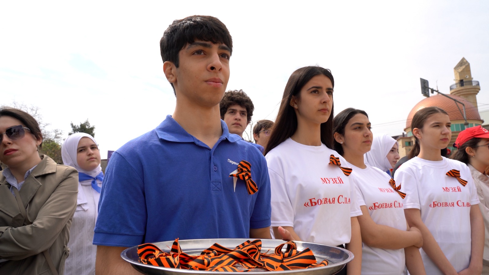 Сегодня, 21 апреля, у памятника воинам 345-й Дагестанской стрелковой дивизии прошла патриотическая акция «Георгиевская лента», приуроченная к 80-летию Победы в Великой Отечественной войне.