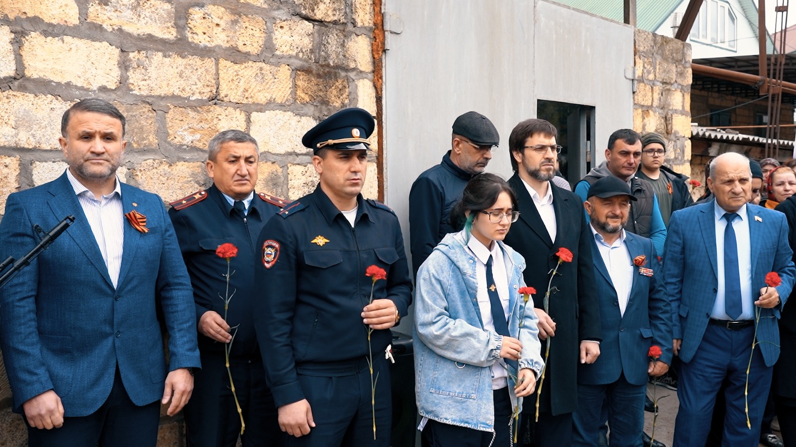 Почётное право открыть мемориальную доску было предоставлено заместителю главы администрации Гаджиамину Рамалданову и матери погибшего героя.
