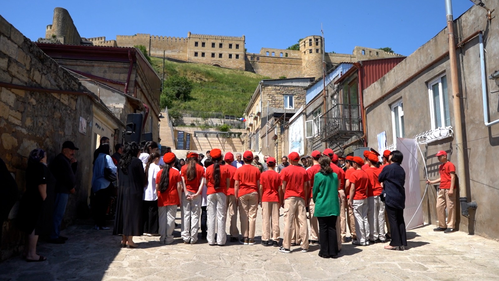 Почётное право открыть мемориальную плиту было предоставлено родной сестре Рустама Агаевича – Шарифе Сулеймановой и Гаджимураду Гаджимурадову.