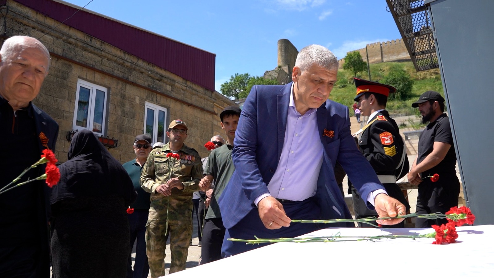 Сегодня, 22 мая, в Дербенте прошло открытие мемориальной плиты участнику специальной военной операции, кавалеру ордена Мужества Техрану Рустамову, погибшему при исполнении воинского долга. Памятный знак установлен на фасаде дома на 8 магале, где проживал герой.