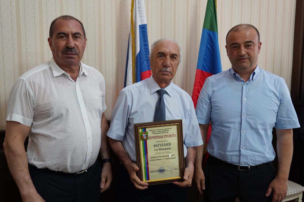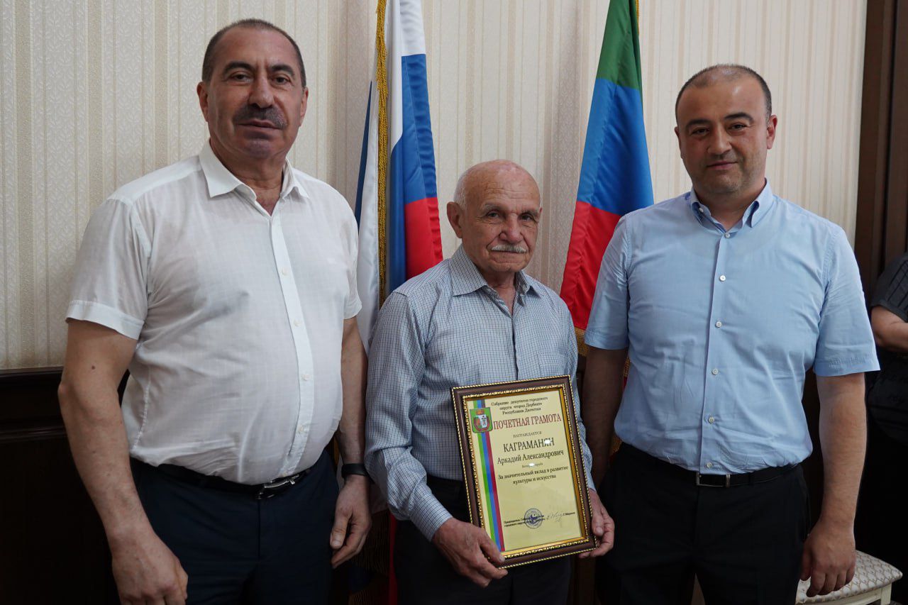 Далее состоялось награждение. Почётными грамотами Собрания депутатов городского округа «город Дербент» награждены председатель Совета старейшин города Али Фатуллаев - за активную общественную деятельность и в связи с юбилеем - 75-летием со дня рождения, а также Аркадий Каграманян - за значительный вклад в развитие культуры и искусства и в связи с юбилеем - 85-летием со дня рождения.