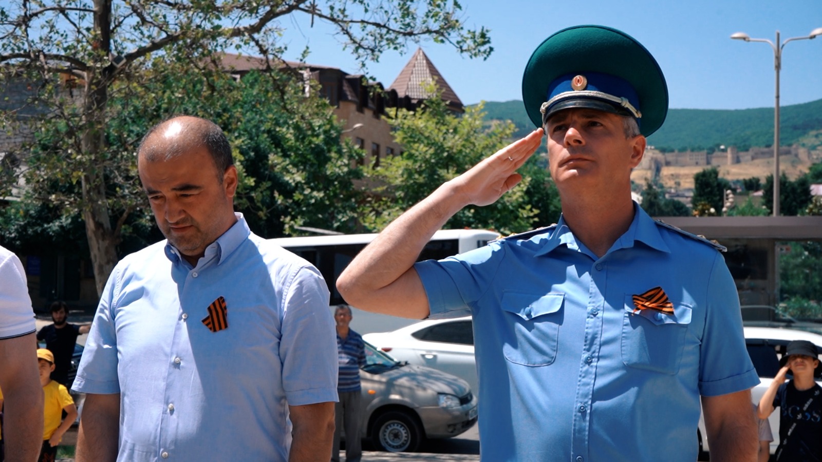 В мероприятии приняли участие глава Дербента Ханлар Пашабеков, председатель городского Собрания депутатов Гасан Мирзоев, начальник службы Пограничного управления ФСБ России по Республике Дагестан в г.Дербенте Владимир Увыхмин, представители ветеранских организаций, труженики тыла, дети войны, волонтёры Победы, члены семей участников СВО, а также лагеря школ №11 и №15.