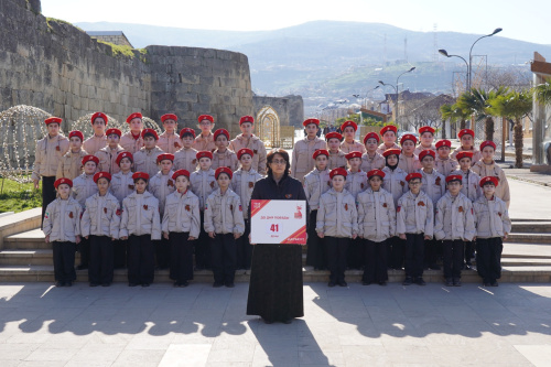 Юнармейцы вокальной студии «Счастливое детство» имени Кулиева Адиля Али-Исламовича ,руководитель Алмаз Исаева приняли участие в акции «100 дней до Победы».