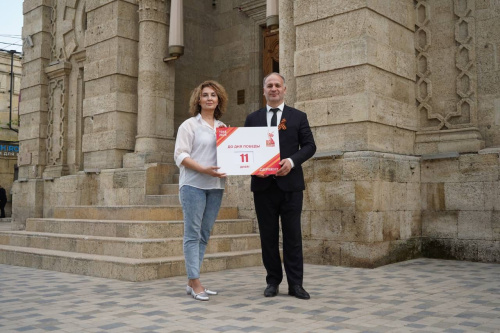 Художественный руководитель Муниципального татского горско-еврейского театра им.Манахимова Л.Я. Джамиля Ибрагимова и директор Табасаранского драматического театра Алимурад Алимурадов приняли участие в акции «100 дней до Победы».