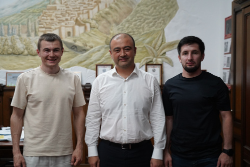Сегодня, 25 сентября, глава города Дербент Ханлар Пашабеков провёл встречу с ветераном специальной военной операции Камилем Ижболдиным - командиром десантно-штурмового взвода, дважды кавалером ордена Мужества, который находится в Дербенте с визитом.